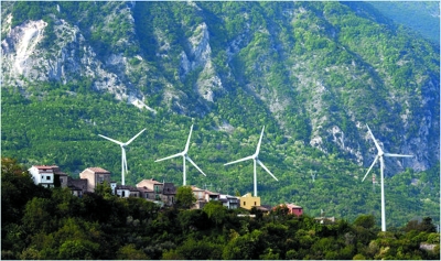 托科(Tocco da Casauria)意大利中部山区的一个小镇,大约有2700的居民,属于比较贫困的地区,远远看上去就可以看到耸立在山头的4台风力发电机组,由于地理位置极佳,这四台风力发电机组所产生的电力比小镇所需的电力还要多上30%。
