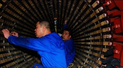 (工人开始检查发电机“心脏”)