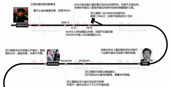 2013年3月26日,浙江省高级人民法院依法对张辉、张高平强奸再审案公开宣判,撤销原审判决,宣告张辉、张高平无罪。