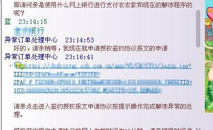 此时,焦急的陈女士没有多想,便与店家提供的客服QQ进行了联系。名为“异常订单处理中心”的客服QQ表示:要解冻之前的订单,需要进行“签约授权”操作,并在询问了陈女士使用的是哪家银行后,提供了一个链接。