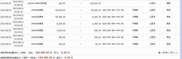陈女士点开了上述链接,并按照客服QQ的提示进行了逐步操作,但随后便立即发现自己网银账户的资金异常。在之后不足5分钟左右的时间里,骗子先后分6次,从陈女士账户中转走了10万8千8百元,加上先前通过代付链接骗取的200元,总共从陈女士那里骗走了10万9千元。等到陈女士确信自己被骗时,账户中的资金余额已经仅剩40.38元。账单显示,所有资金都被转入了一个姓叶的人的账户中。
