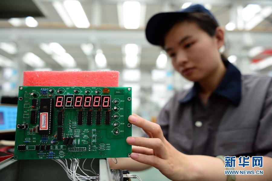 6月19日,在山东胜动集团,工人正在对燃气发电机控制箱的缸温盒进行测试。